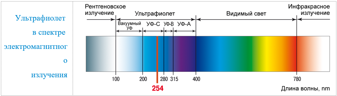 Из всего УФ диапазона участок УФ-С часто называют бактерицидным из-за его высокой обеззараживающей эффективности по отношению к бактериям и вирусам. Максимум бактерицидной чувствительности микроорганизмов приходится на длину волны 265 нм.